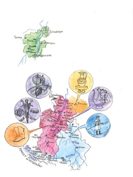Наша с вами Родина – земля лакцев – расположена в центре Нагорного Дагестана, на северной стороне Главного Кавказского хребта, на высоте от 1500 до 3000 м над уровнем моря. Это удивительно красивый край, как, впрочем, красив и весь Дагестан. С детства горы окружали меня повсюду. Просыпаясь, я со двора своего дома видела БюрхIа-Къала – остатки крепостных сооружений и панораму Кумуха, которая начиналась для меня с огромного трёхэтажного дома, сплошь окаймлённого застеклёнными верандами. Дальше – плоские крыши домов, как ступени, спускающиеся вниз; то там, то здесь на крышах, на верандах загадочные силуэты. В детстве мне казалось, что в этих домах, на этих плоских крышах могут жить только очень добрые и красивые люди.