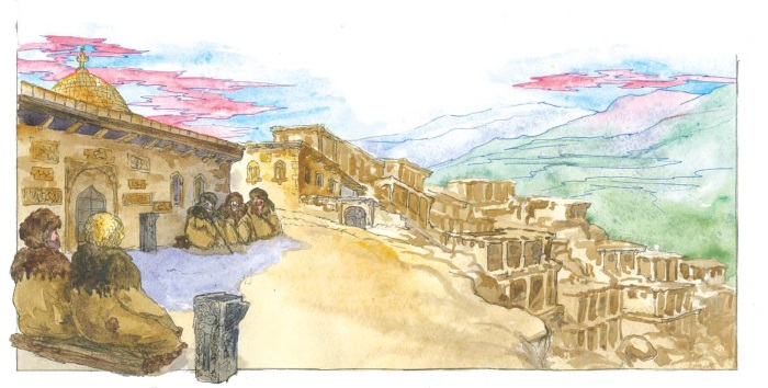 В горах Лакии мало лесов, поэтому печь топили в основном кизяком (бя). Кизячные стены, сплошь покрытые причудливыми, разнообразными орнаментами, защищали открытые веранды, плоские крыши и дворы от северного ветра. Весь зимний день горцы проводили на открытых верандах и крышах, выполняя какие-то домашние работы, а их хватало.
