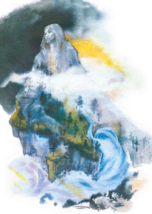 Зашипела Вода от таких поучений. Жалоб потоки к Земле устремила. Жалко Земле Воду стало. И она её бурные речи на себя приняла. Речками в платье припрятала, в складки лесные укрыла. Да так и поныне Земля тем стремнинам внимает, дубравным шёпотом вторит, дабы муж не серчал да сестра поутихла.
