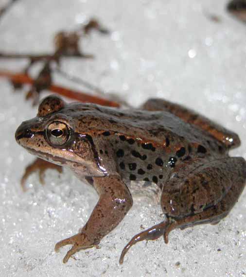The most freeze-tolerant higher animal is the wood frog, which can literally become a ‘frog-sicle’, enabling it to live further north than any other amphibian and to hibernate close to snowmelt ponds, presumably to give it a head start and enable it to reproduce quickly before the ponds dry.