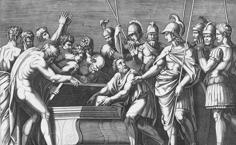 АЛЕКСАНДР МАКЕДОНСКИЙ ПРИКАЗЫВАЕТ СОХРАНИТЬ РАБОТЫ ГОМЕРА. МАРКАНТОНИО РАЙМОНУМ