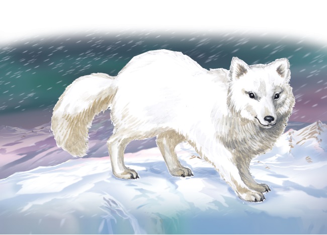 Отряд: хищные. Масса тела не более 10 кг, длина тела около 100 см, из них 30 см приходится на хвост. В меню песца на территории России ученые насчитали 125 животных, 25 растений. В среднем у песцов рождается до девяти детенышей. Обитает в тундре, на берегах Ледовитого океана, однако зимой он часто кочует на юг Финляндии. Встречается разновидность с голубоватым мехом.
