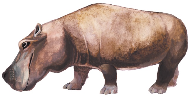 Отряд: мозоленогие. Весит до 3 тонн, длина – 4 метра, высота в плечах 165 см. Превосходно плавает и ныряет. Питается водной растительностью, прибрежными травами. В потомстве один бегемотик весом до 50 кг и длиной до 120 см. Встречается только в Африке. Известен и другой бегемот – карликовый. Он не тяжелее 260 кг при длине 150 см и, в отличие от обыкновенного бегемота, который является стадным животным, ведет одиночный образ жизни в лесных водоемах.