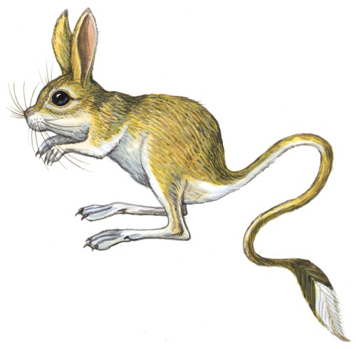 Отряд: грызуны. Самый крупный из тушканчиков имеет длину до 25 см без хвоста, хвост – около 30 см. Пища: семена, луковицы, клубни растений. В помете 2–5 детенышей. Самый северный из тушканчиков, встречается не только в пустыне, полупустыне, но и на юге Сибири, в бассейнах Оки и Камы. Ведет ночной образ жизни, на день вход в свою нору затыкает пробкой из растений.
