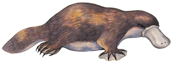 Отряд: однопроходные, подкласс: первозвери. Длина вместе с хвостом – до 65 см. Питается в воде насекомыми, ракообразными моллюсками. Откладывает от двух до четырех яиц. Молоко стекает из пор кожи (сосков нет) по шерсти, и детеныши слизывают его. Хвост – уплощенный плавник, передние лапы с перепонками, выходящими за пределы когтей, они складываются при хождении или когда нужно когтями рыть нору. Обитает только в Австралии.