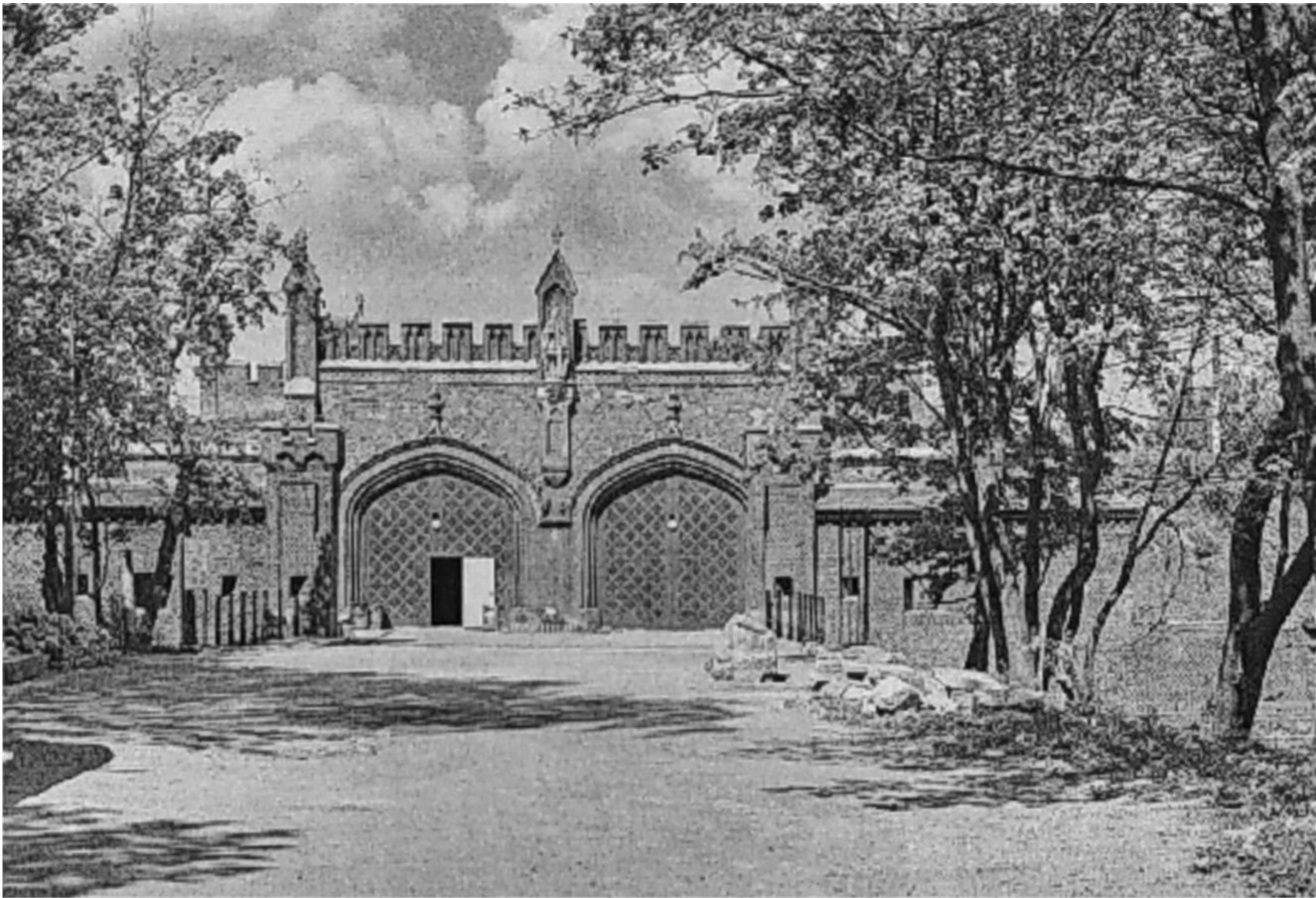 Сооружение в псевдоготической манере, выстроенное в XIX веке (самые первые ворота стояли здесь с начала XVIII столетия).