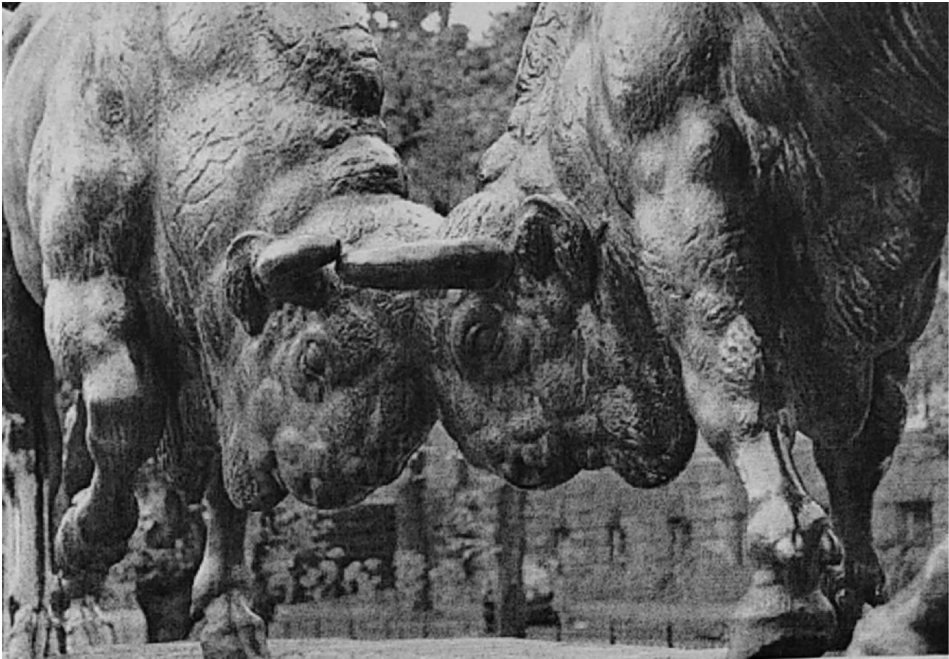 Скульптурная группа работы А. Гауля, созданная в 1912 году. Этот мастер был одним из самых известных анималистов своего времени. Композиция выполнена в виде фигур двух могучих зубров, сцепившихся между собой в схватке. Скульптура успешно пережила военные годы, она до сих пор украшает улицы Калининграда и является одной из городских достопримечательностей. В 2006 году ее реконструировали и восстановили фонтан.