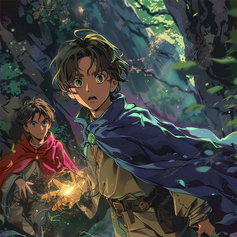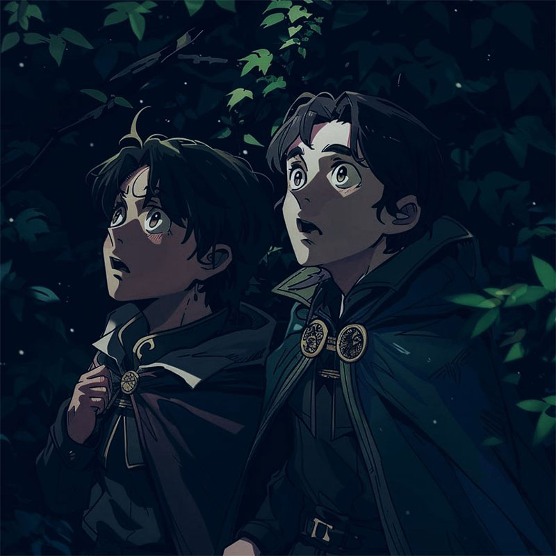 Первые минуты в лесу были наполнены тусклым светом, который лишь медленно проникал сквозь густые ветви и листву, но постепенно мальчишки начали различать контуры окружающего мира. Их глаза приспосабливались к темноте, словно наученные магией ночи, и они удивленно осматривали окружающий пейзаж.