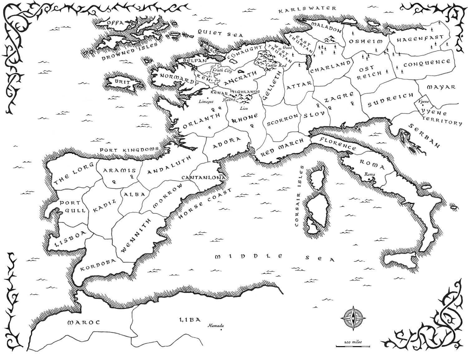 Returning to his duties, Makin knew that however long the child pursued his vengeance it would never fill him, never heal the wounds he had taken. The prince might grow to be as cold and dangerous as his father, but Makin would guard him, give him the time he needed, because in the end nothing would save the boy except his own moment in the doorway, with his own fire ahead and his own cowardice behind. Makin could tell him that of course – but there are many gaps in this world … and there are some that words can’t cross.