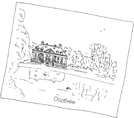 Летом особняк принимает идиллический вид. Его стены мягко сияют в теплом утреннем свете под первыми лучами солнца, заливающего фасад. За домом расстилаются поля, густо заросшие диким ячменем, одуванчиками и медвежьим ухом, а горизонт тонет в безмятежных водах Днепра. Но осенью, когда смолкает песнь жаворонков, небеса и камень окрашиваются в серый. Ветер врывается в дом сквозь рассохшиеся оконные рамы и завывает в комнатах, пламени каминов с трудом удается прогреть их до сносной температуры. С наступлением зимы голые ветви яблонь сгибаются под тяжестью снега, и особняк кажется затерянным где-то на краю света.