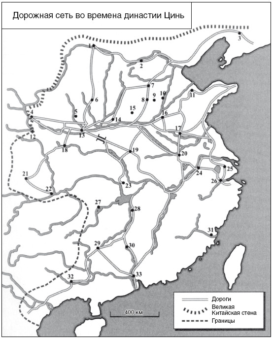 Из юридических документов, найденных в Шуйхуди, стало известно, что при династии Цинь вдоль дорог появились контрольно-пропускные пункты, где путешественники вносили подать и предъявляли пропуска, без которых не могли продолжить свой путь. Эти учреждения сохранились при династии Хань. В хрониках сказано, что эти пропуска иногда подделывали, а в годы больших неурожаев пропускные ограничения на перевозку зерна отменялись6. В нескольких древних текстах говорится о пропусках для посещения столичной области и выезда из нее, об ограничениях на поездки зимой, на запрет отъезда подданных из приграничных областей и задержании на дорогах подозрительных путников. На случай крайней необходимости при постах проверки пропусков предусматривались камеры временного заключения. Дороги обеспечивали беспрепятственное перемещение людей и товаров по всему Китаю, но это перемещение тщательно контролировалось в интересах государства.