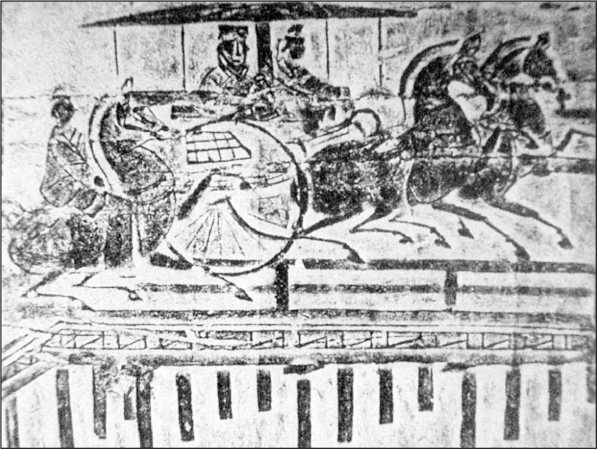 Такая сеть дорог облегчила важнейший обряд объединения, известный как императорский выезд, во время которого император лично осмотрел объекты, строившиеся на территории его вотчины. Первый китайский император за десять лет совершил не меньше пяти поездок по своим новым восточным областям (см. карту 8). Многие императоры династии Хань, особенно в период Западной Хань, совершали такие же поездки по стране. Официальный статус вельмож определялся численностью свиты, которая сопровождала их при разъездах по империи для осуществления государственных дел. На фресках склепов сановников династии Хань изображены сцены с вереницами экипажей.