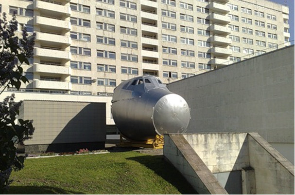 Но сперва я в литературе встретил соответствующее упоминание, а затем обнаружил в Интернете фотографию этого артефакта (фото 1). Дело в том, что перед корпусом больницы на транспортном постаменте разместилась носовая часть многоразового космического челнока «Буран»!