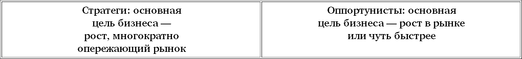Оппортунисты тоже амбициозны. Рост для них – такая же безусловная ценность, как и для стратегов. Они без промедления набрасываются на любую возможность роста бизнеса. Однако они мыслят реалистичнее и приземленнее: оппортунистические идеи очень практичны и лишены гигантомании.