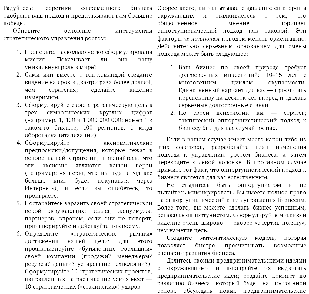 И потому мой следующий тезис по-прежнему является для современного бизнеса ересью: оппортунистический бизнес может быть так же успешен, как и стратегический. Оба подхода в равной степени имеют право на существование.