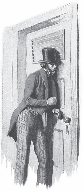 Мы продолжали разговаривать, а Джек тем временем достал небольшую дорожную сумку и стал открывать ее, попросив нас отвернуться и не смотреть. Мы исполнили его желание, а когда он сказал нам, что мы можем по-прежнему смотреть на него, он оказался до такой степени изменившимся, что невозможно было узнать его. Выпуклые синие очки закрывали его глаза, и у него каким-то чудом выросли самые натуральные темные бакенбарды и усы. Родная мать не узнала бы его. Он спросил нас, похож ли он теперь на своего брата Юпитера.