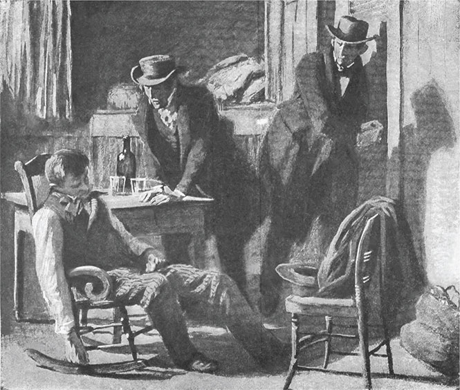 Вот такой-то весенней горячкой заболели и мы с Томом Сойером, и заболели очень опасно. Но Тому нечего было и думать о путешествиях; он говорил, что его тетка Полли очень ясно дала ему понять, что ни в каком случае не допустит, чтобы он бросил школу и отправился бродяжничать. Однажды мы сидели на ступеньках крыльца в довольно мрачном настроении, когда вдруг из дома выходит тетка Полли с письмом в руке и говорит: