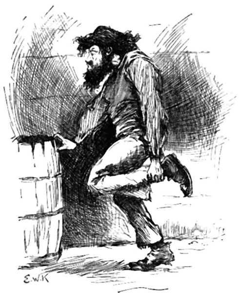 Не знаю, сколько времени я проспал, как вдруг раздался страшный крик, и я вскочил на ноги. Отец метался во все стороны как сумасшедший и кричал: «Змеи!» Он жаловался, что змеи ползают у него по ногам, а потом вдруг подскочил да как взвизгнет – говорит, будто одна укусила его в щеку, – но я никаких змей не видел. Папаша начал бегать по комнате, все кругом, кругом, а сам кричит: «Сними ее! Сними ее! Она кусает меня в шею!» Я никогда не видел, чтобы у человека были такие дикие глаза. Скоро он выбился из сил, упал на пол, а сам задыхается; потом стал кататься по полу быстро-быстро, расшвыривая вещи во все стороны и молотя по воздуху кулаками, кричал и вопил, что его схватили черти. Мало-помалу он унялся и некоторое время лежал смирно, только стонал. Потом совсем затих и ни разу даже не пикнул. Я услышал, как далеко в лесу ухает филин и воют волки, и от этого тишина стала еще страшнее. Отец валялся в углу. Вдруг он приподнялся на локте, прислушался, наклонив голову набок, и говорит еле слышно: