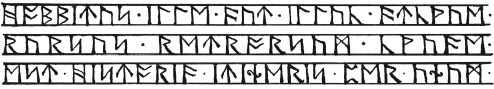 runae fuerunt litterae ueteres, quae in principio ad eas insculpandas et inscribendas ligno uel saxo uel metallo in usu erant, itaque tenues atque angulosae fuerunt. in temporibus huius fabulae nani solum illis frequenter uti sunt, praecipue historias priuatas aut arcanas scribendi causa. in hoc libro runae eorum runis Latinis, quas nunc pauci cognoscunt, signifi cantur. si runae in Tabula Geographica Throris cum uerbis Latine transcriptis (in paginis XXXIV et LXVII) comparantur, tum litteras ad linguam nostram accomodatas inuenire et titulum in runis superscriptum legere licet.