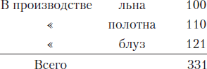 Так, например, для производства полотняных блуз необходимо полотно, а для производства последнего нужен лен. Таким образом, некоторое количество капиталистов занимается производством льна и употребляет на это капитал, равный, скажем, 100 (например, 100 000 руб.). Если норма прибыли равна 10 %, то фабриканты полотна должны будут купить этот лен за 110 и продадут его изготовителям блуз за 121. В таком случае общая сумма капитала, вложенного в эти три отрасли, составит: