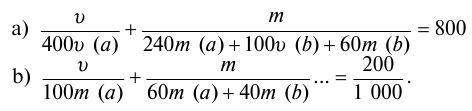 2) II. 500v + 500m = a (400v + 400m) + b (100v + 100m).