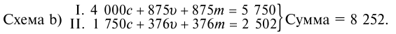 В таком виде схема оказалась бы составленной для простого воспроизводства, так что вся прибавочная стоимость расходуется как доход, а не накопляется. В обоих случаях, как при схеме a), так и при схеме b), мы имеем годовой продукт одинаковой величины стоимости, только в случае b) его элементы группируются по своим функциям таким образом, что снова начинается воспроизводство в прежнем масштабе, тогда как в случае a) создаётся материальный базис для воспроизводства в расширенном масштабе. А именно: в схеме b) (875v + 875m) I = 1 750 I (v + m) обмениваются без остатка на 1 750 IIc, тогда как в схеме a) при обмене (1 000v + 1 000m) I = 2 000 I (v + m) на 1 500 IIc остаётся излишек в 500 Im для накопления в подразделении I.