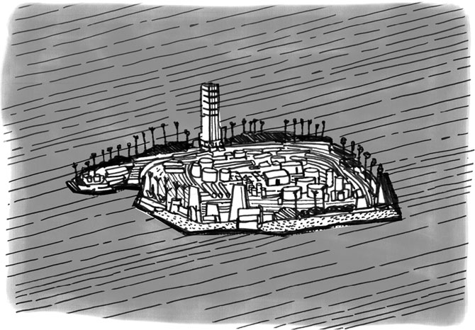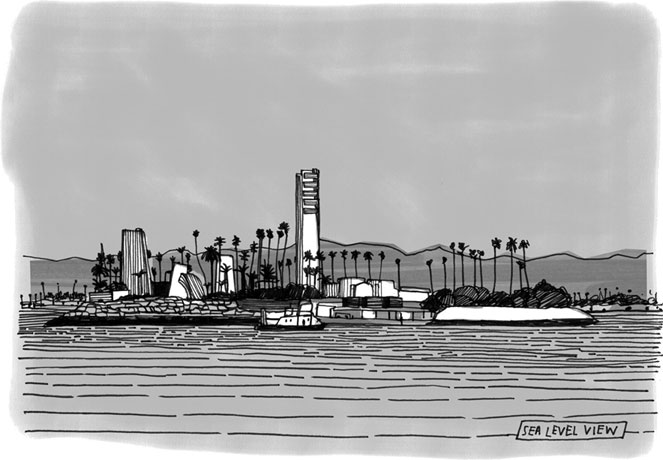 Эти острова появились в 1960-е годы. Для их постройки использовали сотни тонн камней с близлежащего естественного острова, а также кубометры материала со дна залива Сан-Педро. На эту «эстетическую компенсацию» было потрачено около 10 миллионов долларов. Этой частью проекта руководил архитектор Джозеф Линеш, специалист по тематическим паркам, который участвовал в создании сложных искусственных ландшафтов для Диснейленда в Калифорнии и парка EPCOT во Флориде. Один критик описывал причудливые маскировочные конструкции так: «…немного от Диснея, немного от “Джетсонов”, немного от “Швейцарского Робинзона”»[9]. Такая маскировка неплохо работает – в частности, по той причине, что смотрят на нее в основном издалека. Постройки на островах легко принять за какой-нибудь прибрежный гостиничный комплекс или роскошный курорт. За последние полвека нефтяники выкачали на этом участке более миллиарда баррелей нефти, при этом оставаясь незаметными.
