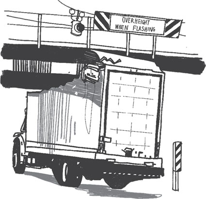 В Дареме (штат Северная Каролина) есть железнодорожный мост, знаменитый тем, что срезает верх у грузовиков, которые отваживаются проехать под ним. Эта эстакада над улицей Саус-Грегсон-стрит, известная под названиями «мост 11–8»[32], «консервный нож» или «гильотина Грегсон-стрит», предназначалась для безопасного проезда грузовых автомобилей высотой почти в 12 футов, которой в 1940 году, когда сооружение было построено, видимо, было достаточно. Но с годами автомобили стали выше, и грузовики все чаще и чаще бьются о мост. Несмотря на установку заметных знаков, мигающих сигналов и других предупреждений, что водителям слишком высоких грузовиков может снести голову, столкновения продолжались.