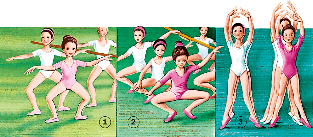 – Смотри, Пируэт, вот трудная фигура. Упражнение на гибкость. Попробуй удержи за пятку ногу выше головы!