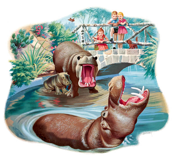 Бегемотам надо много воды. Они почти всю жизнь купаются.