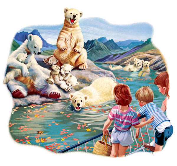 Белые медведи тоже любят поплавать. Только в холодной-холодной воде. Ведь их родина – Северный полюс. У нас им даже и зимой-то жарко.