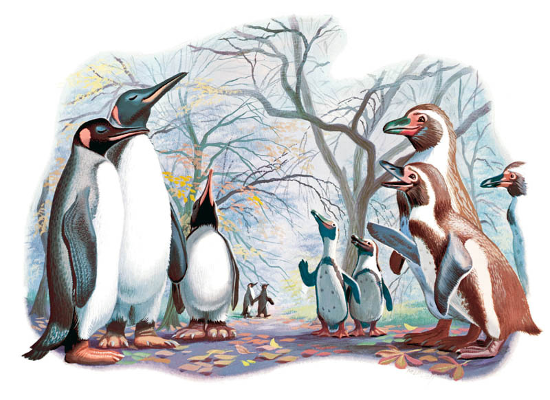 А вон те, помельче, в коричнево-белых костюмах – магеллановы пингвины из Южной Америки. Они пришли поздравить жениха с невестой.