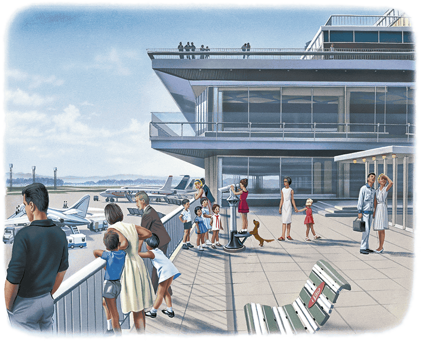 Мы вышли на террасу. Отсюда виден весь аэродром.