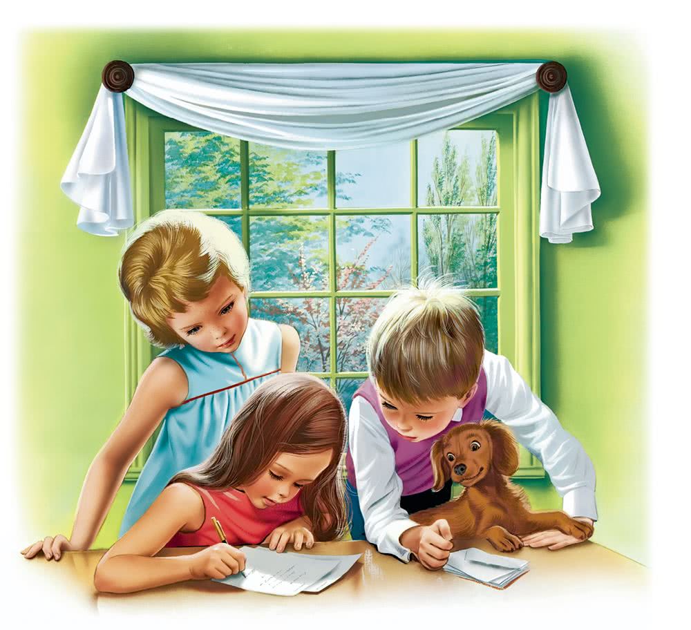 – Мы устроим весёлый праздник в саду, – сказал папа. – Надо разослать приглашения всем гостям.
