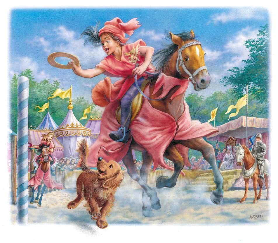 Костя вскочил в седло, вооружился длиннющим деревянным копьём. И стал похож на рыцаря, который отправляется на подвиг.