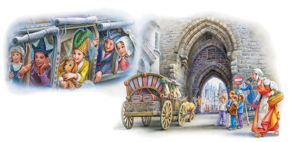 Колёса нашей кареты стучат по каменной мостовой, конские копыта цокают. Мы подъезжаем к крепостной стене. Там, за воротами, начинается другая жизнь.