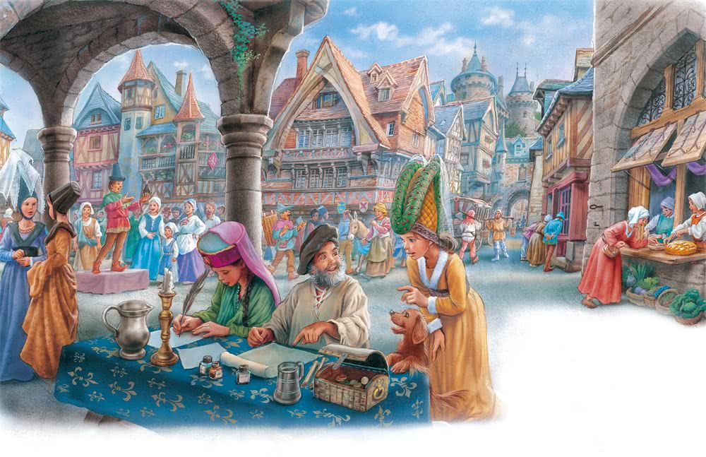 Главную площадь не узнать! Мы подошли к писцу. Его ремесло – писать письма для неграмотных людей. Ведь грамотных в старину было мало.