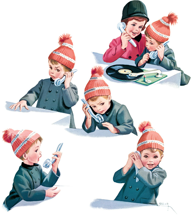 Мы с Филей любим слушать пластинки. Здесь в магазине есть целый отдел с пластинками на любой вкус. Бери трубку и слушай. Кот в сапогах с маркизом Карабасом поют мне прямо в ухо. А у Фили почему-то… никак не поёт!