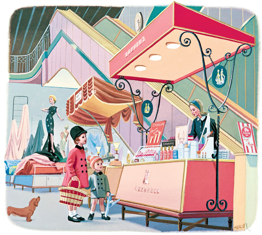 Мы опять спускаемся по эскалатору, теперь на самый-самый нижний этаж. И сразу попадаем в отдел, где продаётся всё, что нужно для домашнего хозяйства, он так и называется: «Всё для дома».