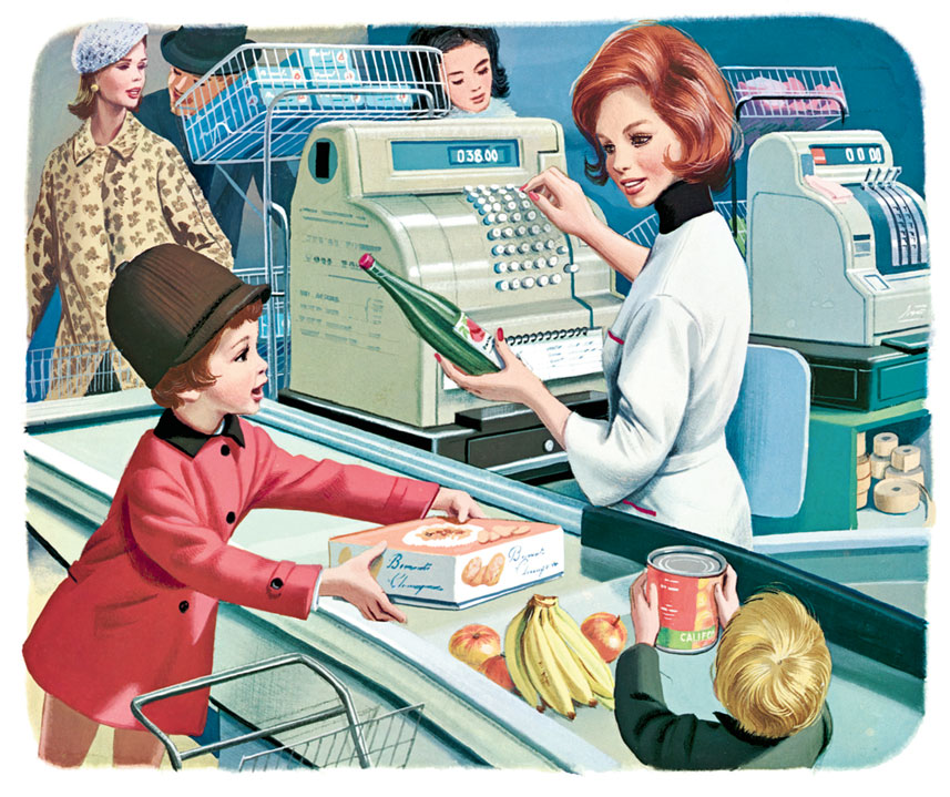 Когда вырасту, может, и я стану кассиршей. Стук-стук-стук – пальцы так и бегают по кнопочкам кассы. Р-раз – выполз длинный, как стружка, чек. Мама велела не потерять его и не забыть про сдачу.