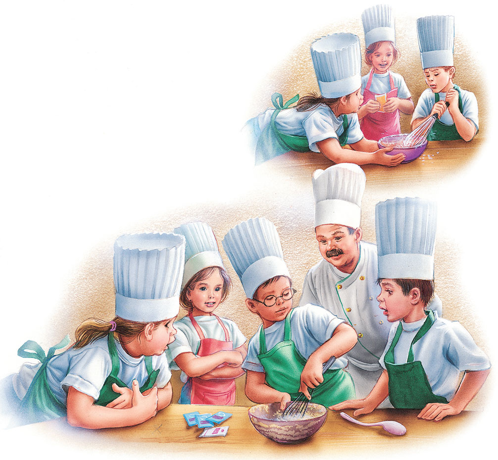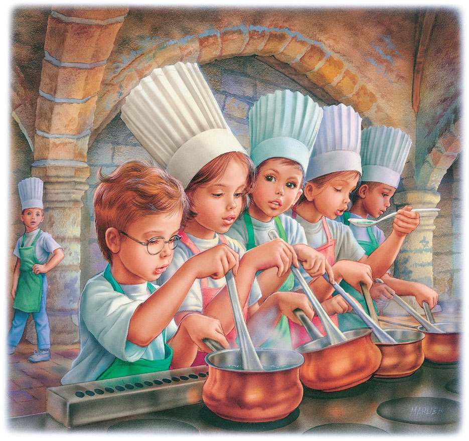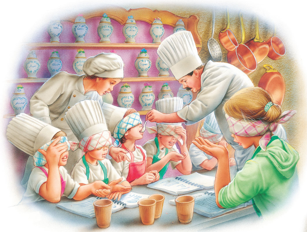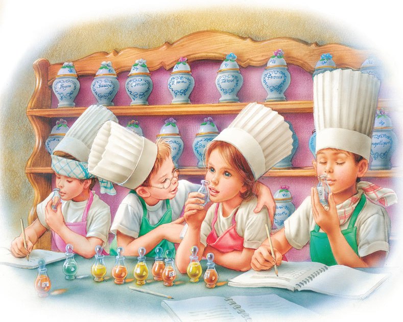 Шеф-повар Кух расставил на столе стеклянные флакончики с разноцветными жидкостями и сказал: