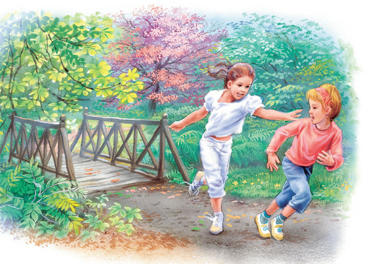 Бегом, бегом по тропинкам, по дорожкам и по мостикам. От смеха, от бега, от жары совсем запыхались.