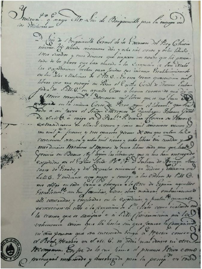 Илл. 3 Расписка Луи-Антуана де Бугенвиля, в которой говорится о передаче колонии Испании и признаются права Испании – AGN Sala X 3-4-5