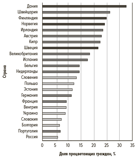 Государственная политика руководствуется исключительно измеримыми показателями, и до недавних пор мы могли использовать только экономические данные, например валовой внутренний продукт (ВВП)[54]. Поэтому работа правительства оценивалась по тому, растет ли национальное богатство. Но зачем нужно богатство? На мой взгляд, не для того, чтобы производить еще больше богатства, а для того, чтобы способствовать процветанию. Теперь мы можем спросить власти: что принесет больше процветания – новая школа, которую вы строите, или парк, который могли бы разбить? Вакцинация против кори или программа трансплантации роговицы? Насколько оправданны с точки зрения процветания пособия для родителей, находящихся в отпуске по уходу за ребенком?