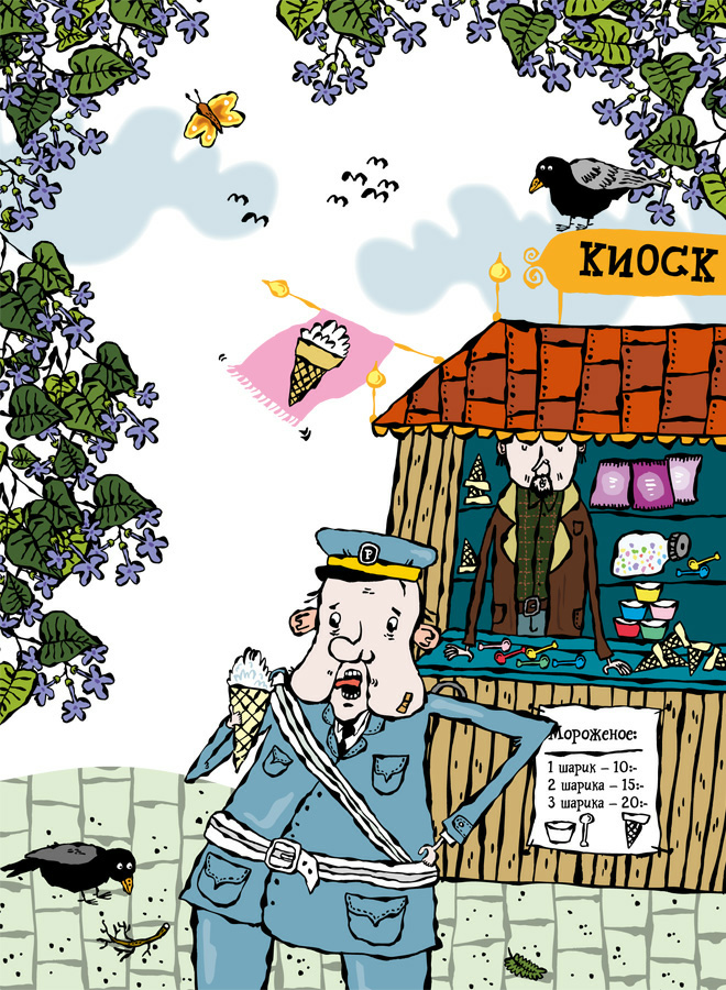 Тут мороженое все-таки вывалилось из рожка и шлепнулось на тротуар. Полицмейстер печально посмотрел под ноги, и тут у него в кармане зазвонил телефон.