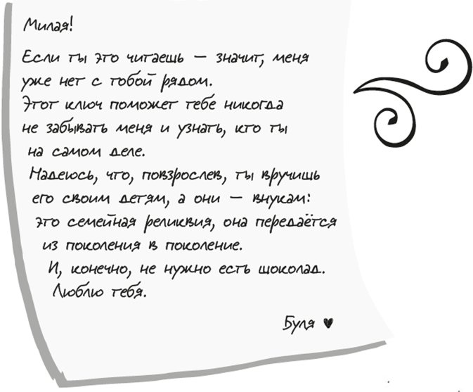 В горле стал комок, когда я прочитала, как она подписала письмо. «Буля» вместо «бабуля», так я называла её в детстве. Почему? Когда я была маленькой, у меня не получалось правильно выговорить это слово, и «буля» так и осталось ласковым прозвищем, шуткой, понятной только нам. Прежде чем убрать записку обратно в конверт, я на мгновение прижимаю её к груди. Только бы не потерять последние слова, которые оставила мне бабуля!