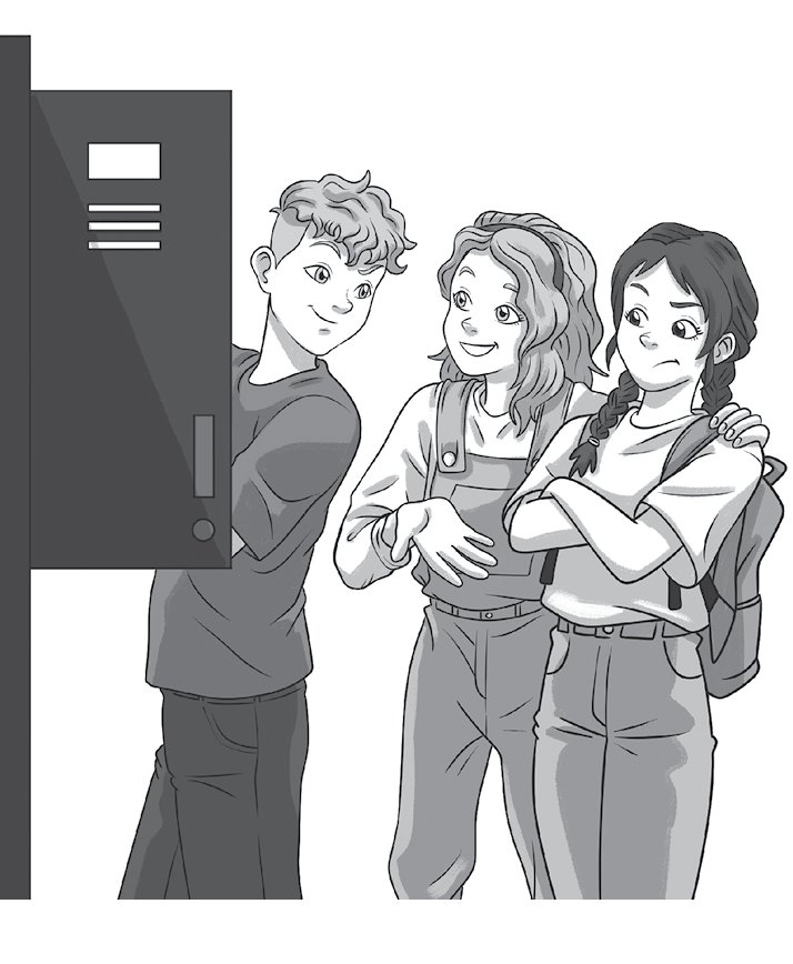 Невысокий щекастый паренёк с вьющейся шевелюрой, лучший друг Лукаса, и Дилан, его двоюродный брат, – такой же высокий, с такими же короткими волосами, только гладкими, – смотрят на нас сверху вниз. Даже противная Жасмин из моего класса поглядывает на меня. Лукас обращает на неё внимание, только когда хочет списать домашнее задание.