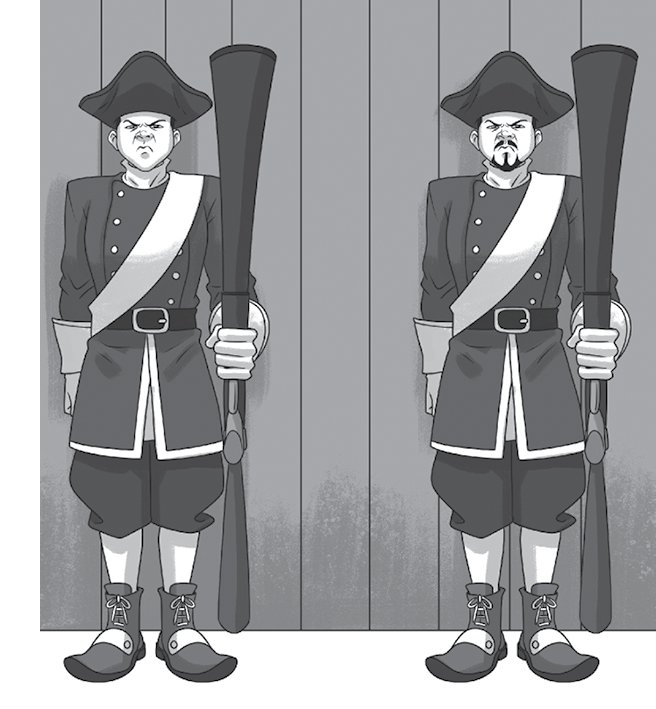 Откуда я знаю, что это стражники? Да это стало понятно с первого взгляда! На них красные камзолы с золотыми пуговицами, шляпы, и в руках… ОГРОМНЫЕ РУЖЬЯ! По этим небольшим подсказкам не трудно догадаться, кто эти люди.