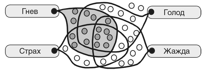 Почему мы укладываем такие разные понятия в эти общие слова-чемоданы? Как будет рассказано в разделе 1.3, каждый из наших обычных «эмоциональных» терминов описывает целый набор различных процессов. Таким образом, мы используем слово «гнев» для обозначения самых разных ментальных состояний, причем некоторые из них меняют наше восприятие действительности, так что невинные жесты начинают восприниматься как угрозы – и повышают нашу склонность к нападению. Страх также влияет на наши реакции, но заставляет отступать от опасности (как и от некоторых слишком сильных удовольствий).