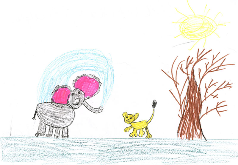 Львица ЗояТак я нарисовала львицу Зою, которая встретила слоненка Джека.
